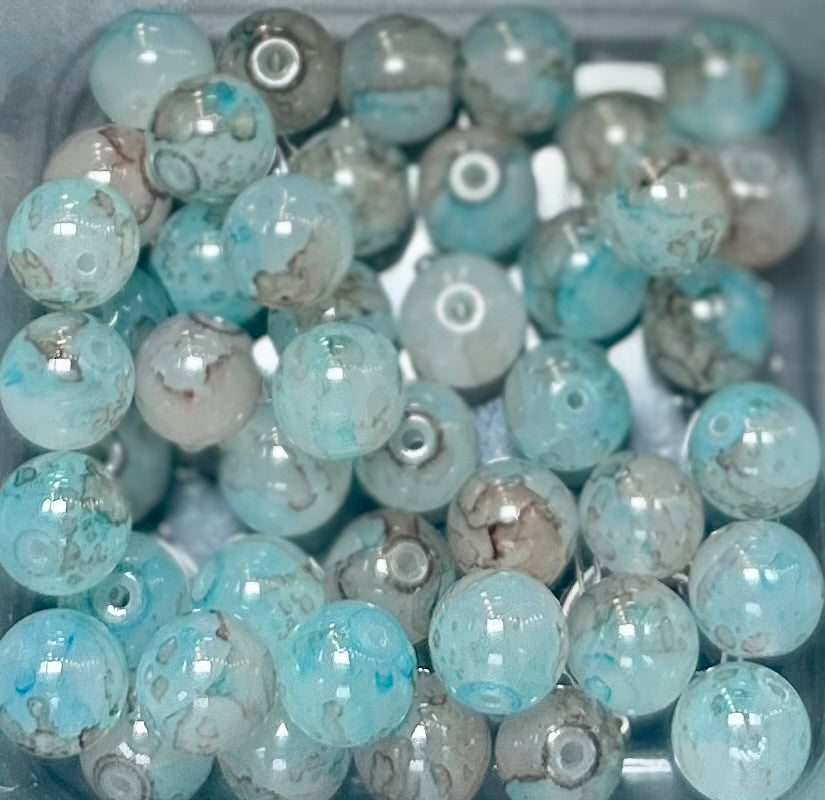 Enhance your jewelry designs with the sophisticated and natural beauty of our Wholesale Bead Bags, featuring an exquisite blue and brown marble design. Each bag contains 40 high-quality glass beads, meticulously crafted to add an elegant touch to your creations.