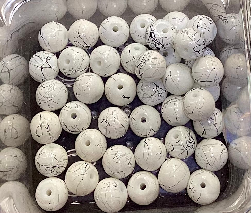 Enhance your jewelry-making projects with The Beaded Vault's exquisite 10mm Bead Bags. Each bag contains 40 meticulously crafted beads, featuring a sophisticated white base adorned with striking black lines. Perfect for adding a touch of elegance and contrast to your designs, these beads are a must-have for any jewelry enthusiast.