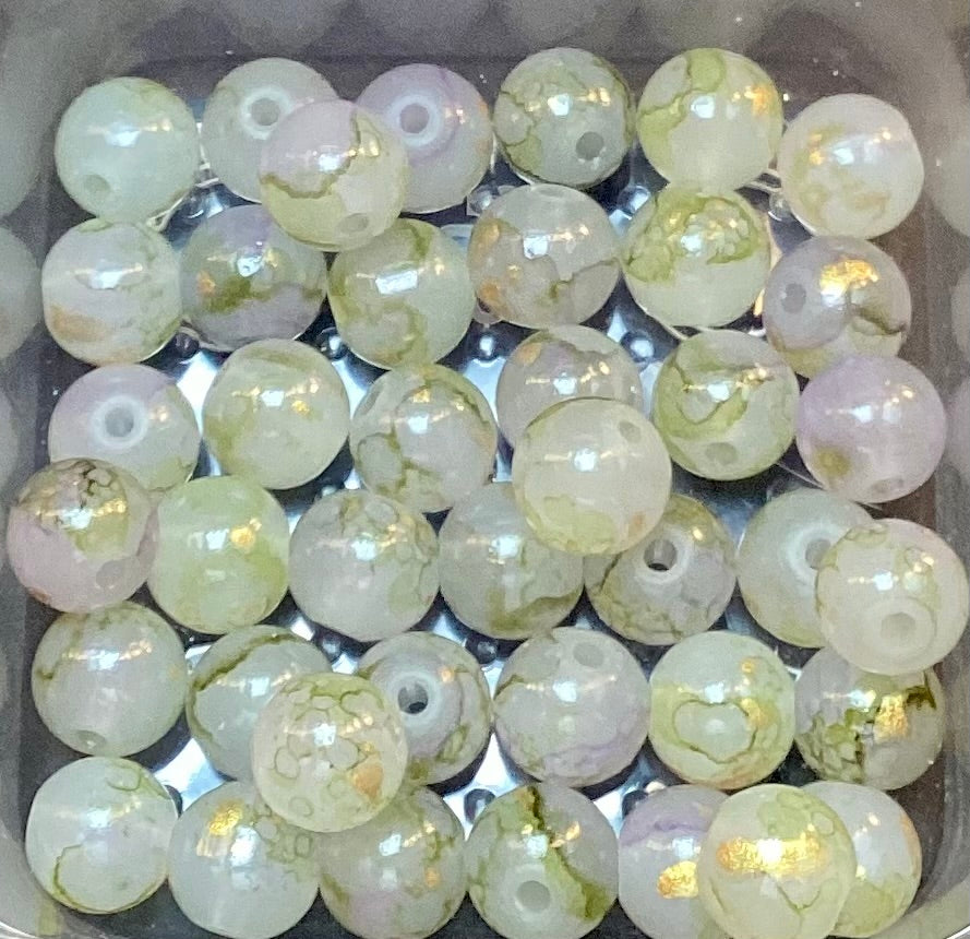 Transform your jewelry designs with the unique beauty of The Beaded Vault’s 10mm Bead Bags. Each bag contains 40 exquisite beads, featuring a stunning clear base adorned with intricate purple and green veins, complemented by elegant gold dots. These beads are perfect for adding a touch of sophistication and charm to your creations.
