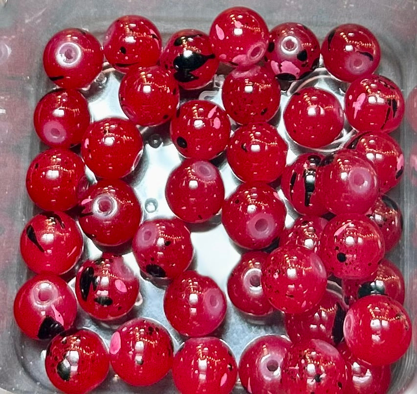 - Design: Bold red beads with an eye-catching black and pink splatter pattern, perfect for creating unique and vibrant jewelry pieces