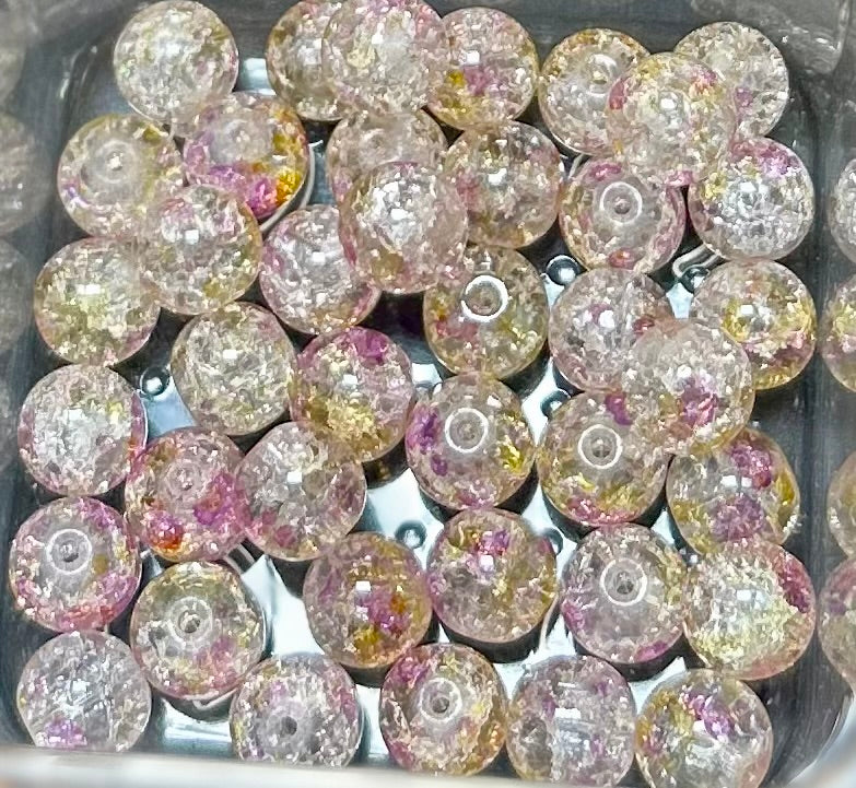 Add a splash of color to your jewelry designs with our Wholesale Bead Bags, featuring clear beads with vibrant purple and yellow splatter. Each bag contains 40 high-quality glass beads, meticulously crafted to inspire your next creative project.