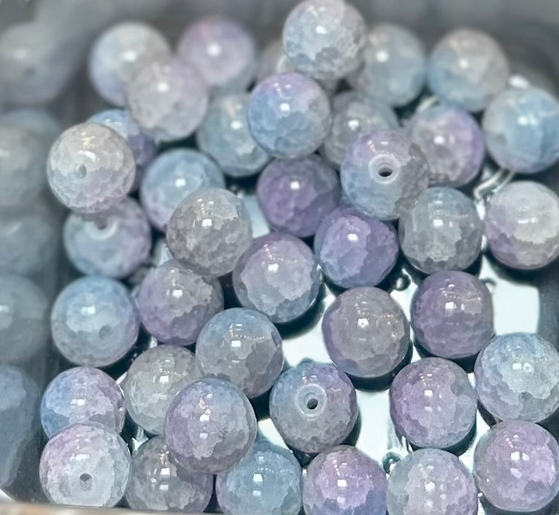 Infuse your jewelry designs with vibrant colors and unique textures with our Wholesale Bead Bags, featuring an exquisite mix of purple, blue, and yellow crackle beads. Each bag contains 40 high-quality glass beads, meticulously crafted to inspire your creative projects.