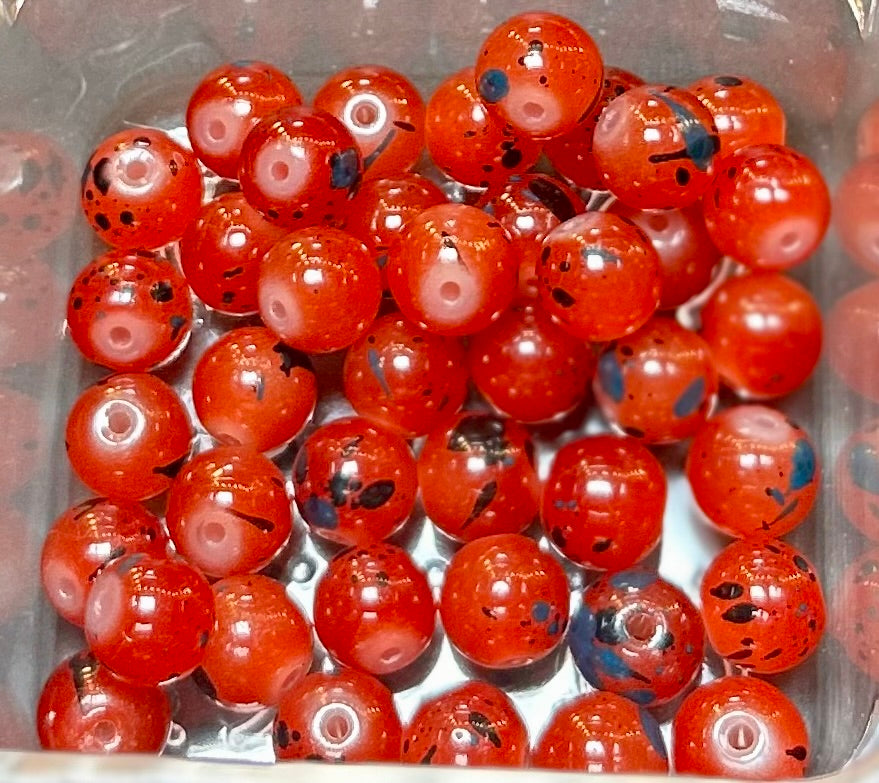 - Design: Vibrant orange beads with a unique black splatter pattern, perfect for adding a dynamic and eye-catching element to your designs