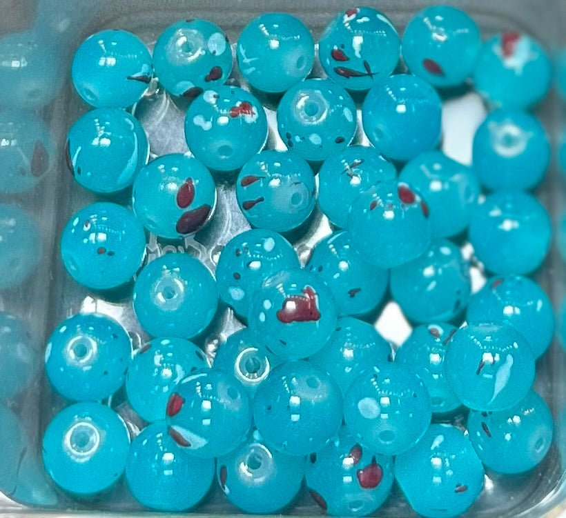 - Design: Bold blue beads with a dynamic red and light blue splatter pattern, perfect for making your jewelry stand out