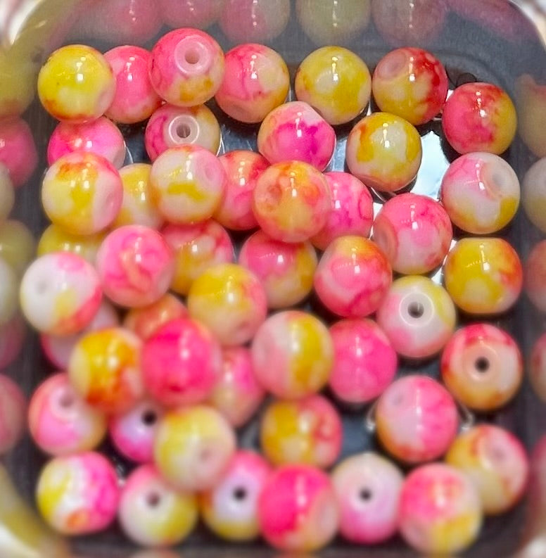 Infuse your jewelry designs with the captivating beauty of our Wholesale 40-Piece Bead Bag, featuring exquisite pink and yellow marble beads. Each bead showcases a unique marbled pattern, blending vibrant hues of pink and yellow for a stunning visual effect.