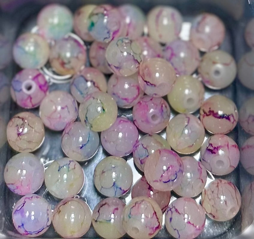 - Design: Clear beads adorned with beautiful multicolored veins, creating a unique and eye-catching appearance