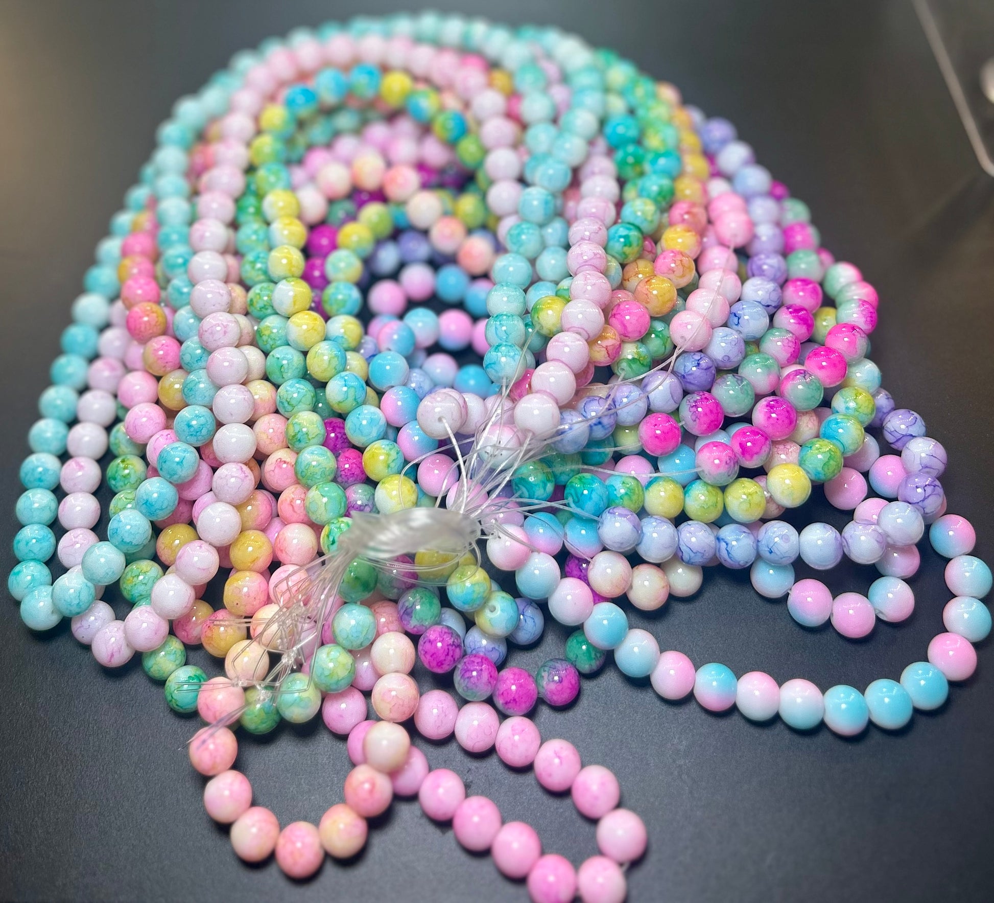 • Design: A diverse assortment of marble beads, each showcasing unique patterns and colors
