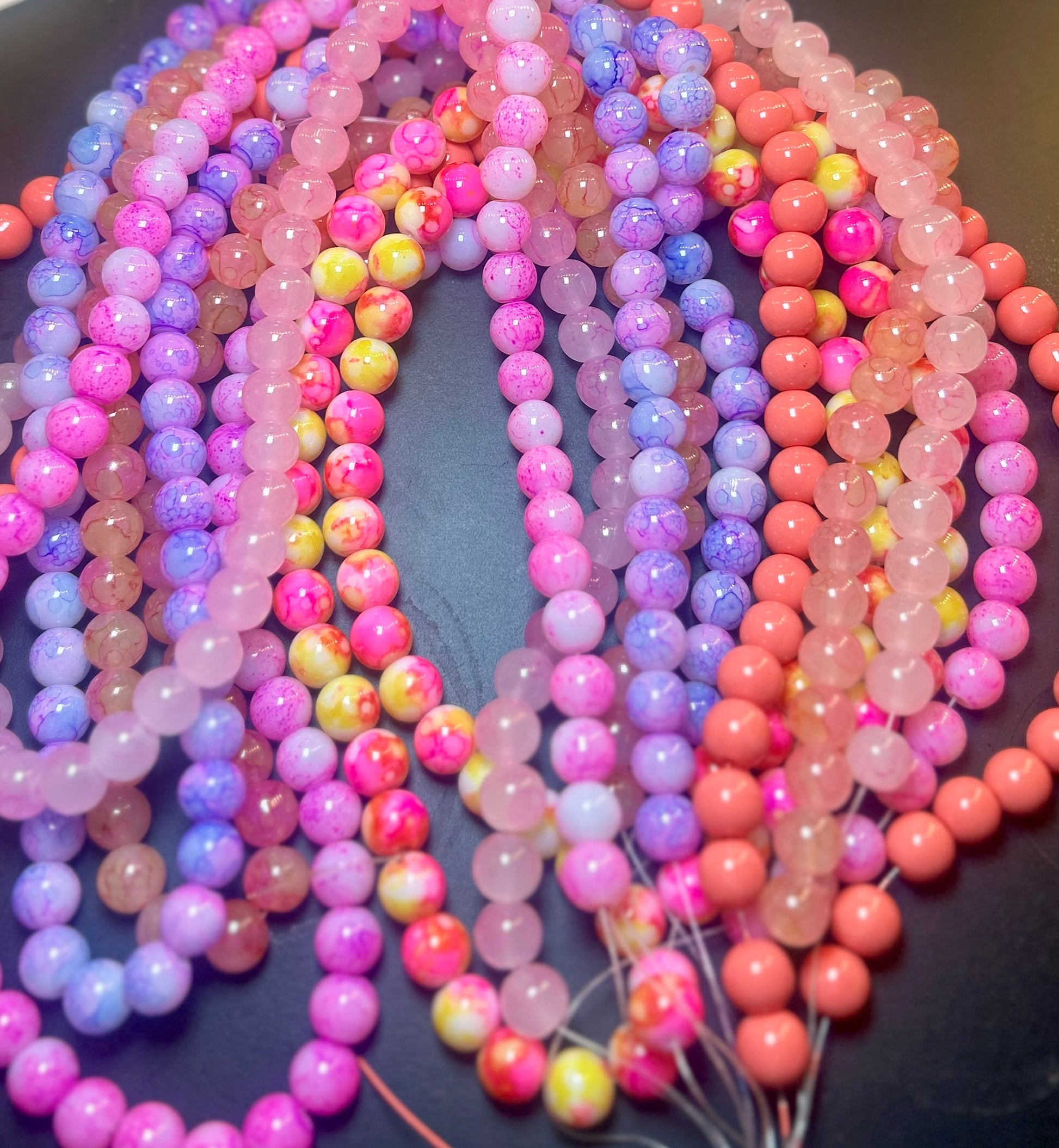 • Design: A variety of pink beads in different colors and styles, each with a stunning crackle effect that adds depth and texture to your designs