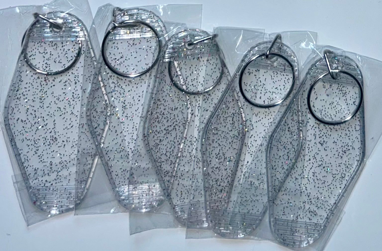 Add a touch of sparkle to your accessories with our Glitter Clear Hard Keychain! This durable and stylish keychain features a clear design infused with subtle glitter, making it perfect for customizing with beads, charms, and tassels.