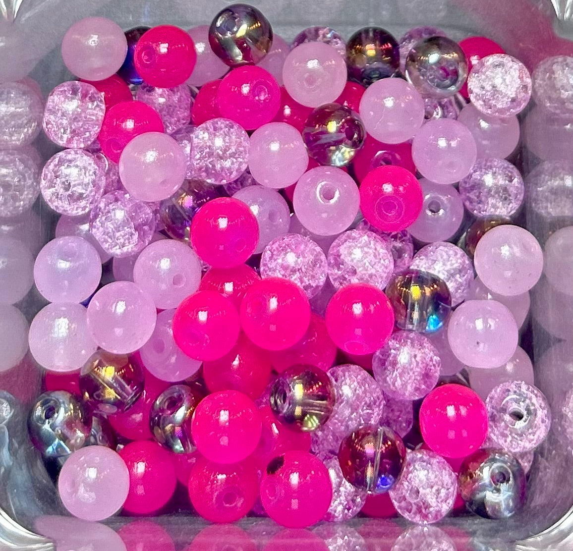 Add vibrant flair to your jewelry designs with The Beaded Vault's Pink, Purple & Oil Spill 8mm Color Combo Mix. This stunning combination of soft pinks, rich purples, and the unique, iridescent oil spill finish creates a striking effect perfect for any jewelry project. Whether you’re creating bracelets, necklaces, or earrings, this versatile bead mix is perfect for all your creative needs.