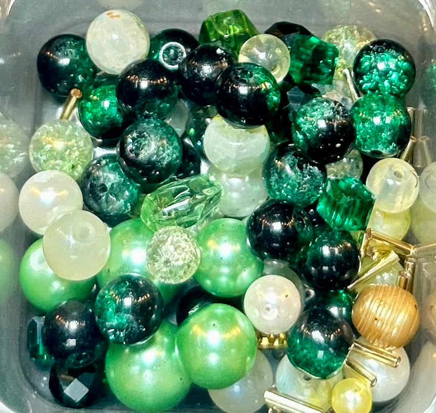 Add a touch of elegance to your jewelry creations with The Beaded Vault's Green, Gold, and Cream Pearl Bead Combo. This stunning collection features a mix of 10mm and 8mm beads in beautiful shades of green, gold, and cream pearl, perfect for creating eye-catching bracelets and more.