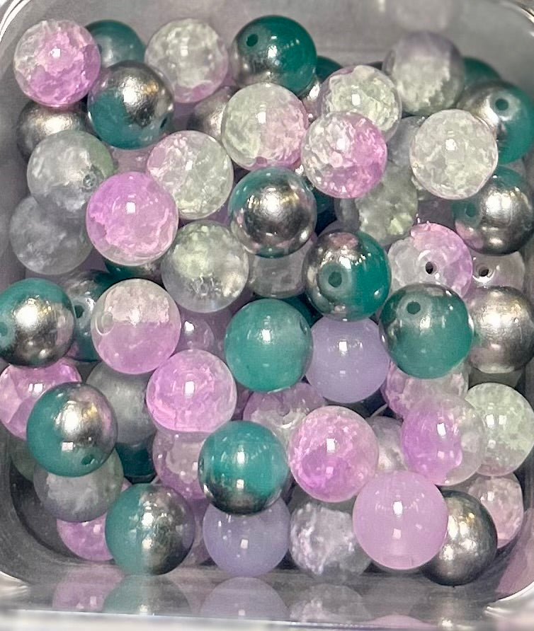 Add a touch of elegance and color to your jewelry designs with The Beaded Vault’s Purple & Teal with Hint of Silver 10mm Bead Combo. This stunning color mix features vibrant purple and teal hues with a subtle silver accent, perfect for creating bold and eye-catching bracelets, necklaces, earrings, and more.