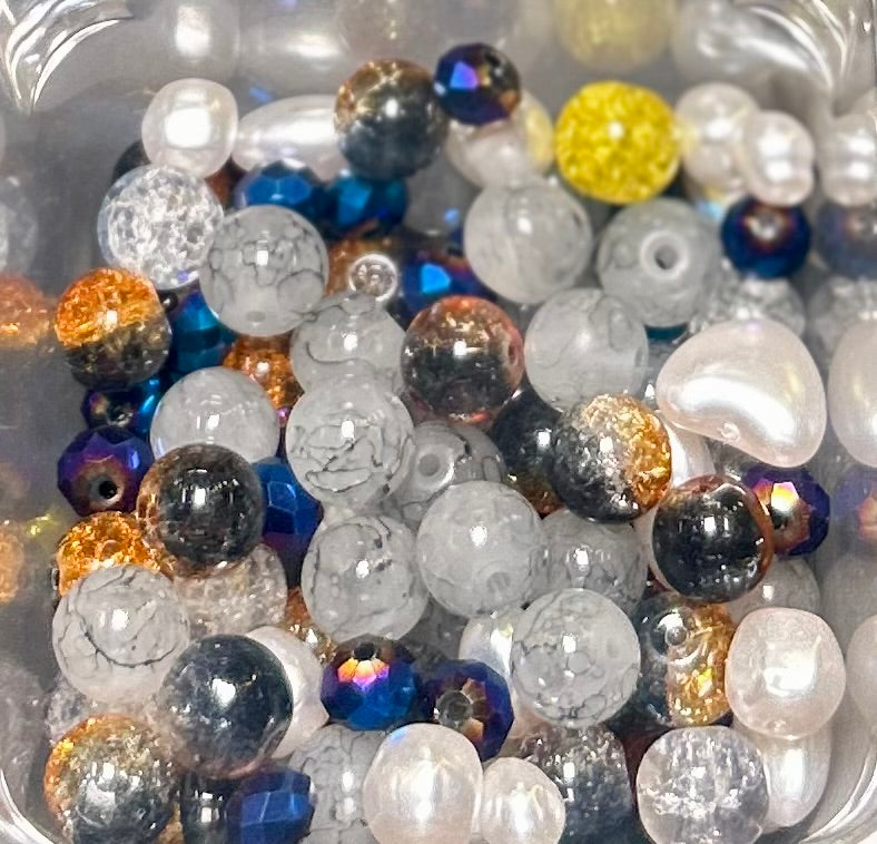 Black, Orange, Oil Spill & White Pearls Bead Combo (10mm & 8mm)