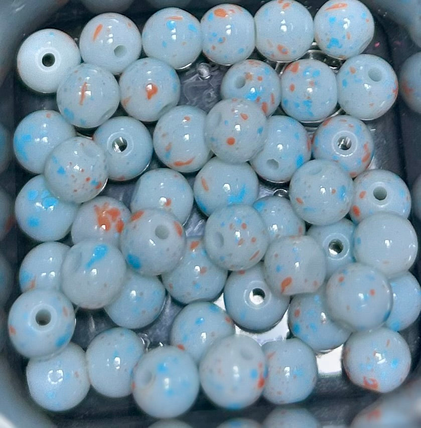 Elevate your jewelry creations with our exclusive Wholesale Bead Bag, featuring 40 stunning white beads with a unique blue and orange splatter design. These high-quality beads are perfect for adding a splash of color and a touch of artistic flair to your projects.
